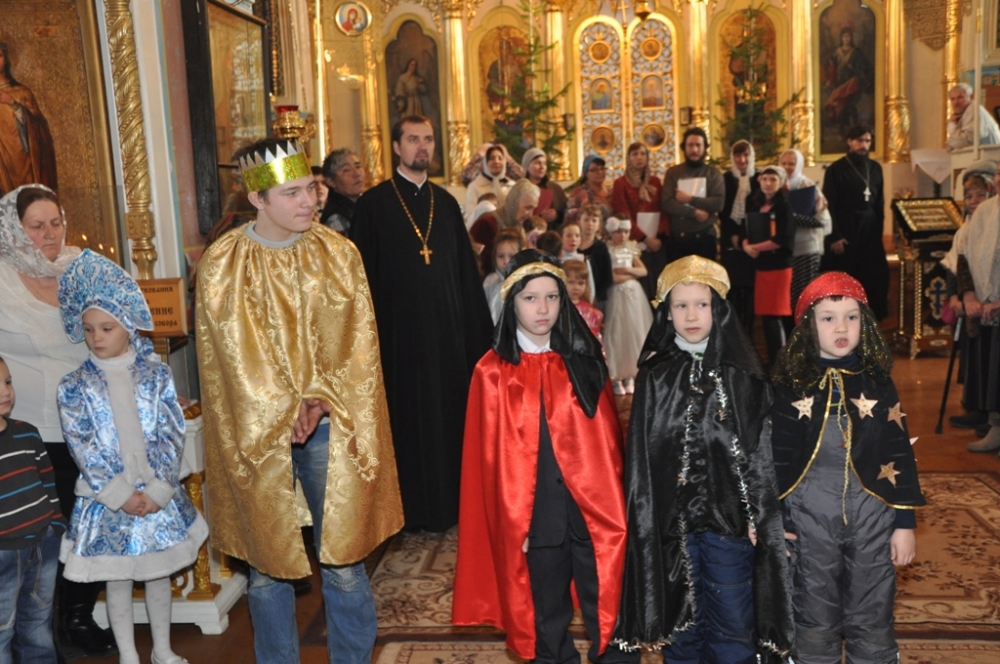 В нем по благословению благочинного церквей Минусинского округа, настоятеля Спасского собора протоиерея Евгения Нещерет приняли участие учащиеся детской Воскресной школы, а так же воспитанники минусинского детского дома и школы-интернат VIII вида для детей отстающих в развитии. Ребятами была подготовлена рождественская сценка, а зрителями стали все верующие присутствующие на богослужении и преподаватели Воскресной школы.